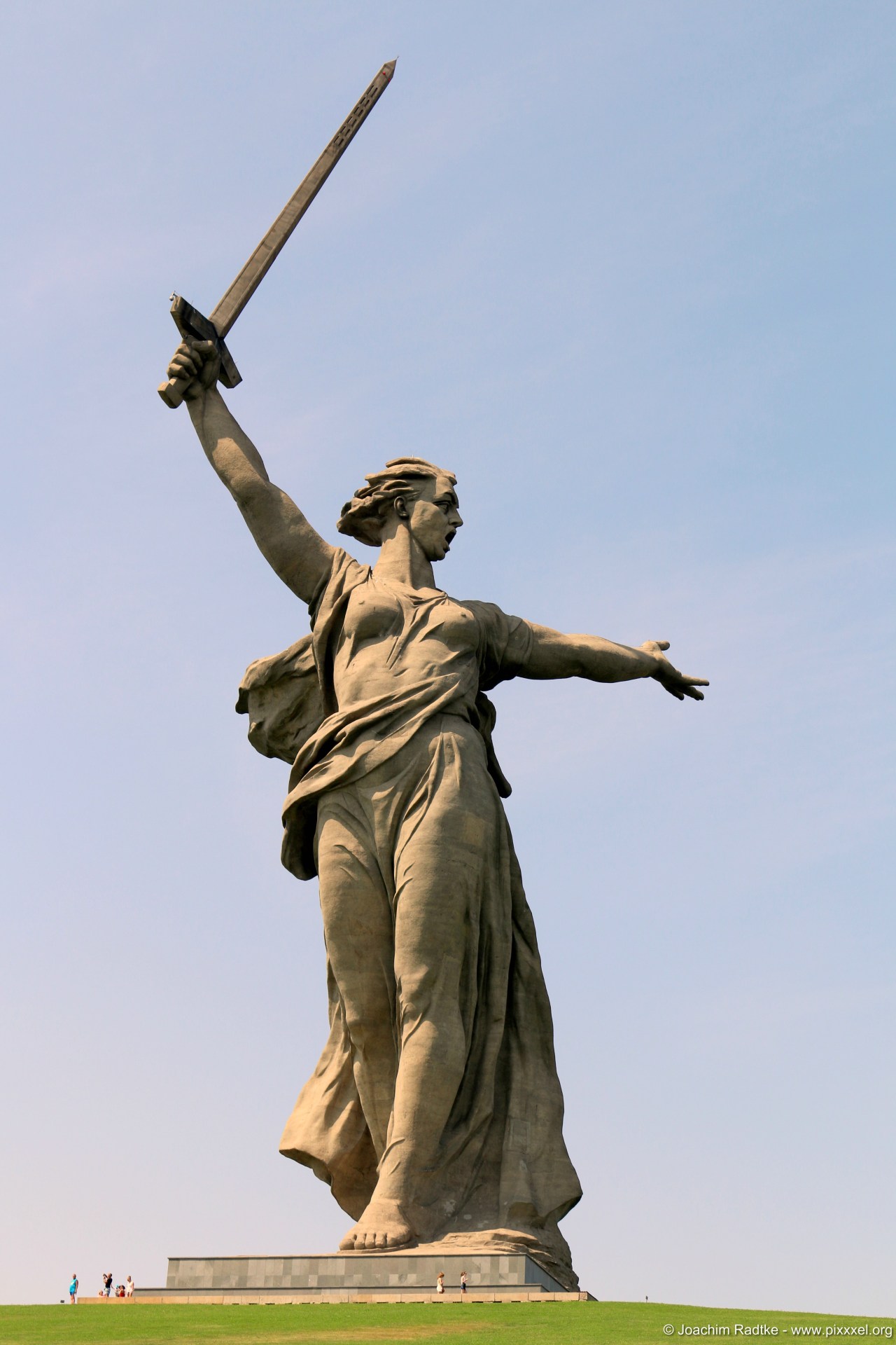 Die Mutter-Heimat Statue ist mit ihren 85m Höhe eine der höchsten der Welt. Der Betonsockel ist 16m hoch, von dem allerdings nur 2m an der Erdoberfläche sind. Am Fuße der Statue liegen gefallene Armeeangehörige höheren Ranges. Unter anderem der Befehlshaber der Stalingrader Schlacht: Wassili Iwanowitsch Tschuikow. Hinter der Statue befindet sich ein Friedhof für die gefallenen der Stalingrader Schlacht, die immer noch gefunden werden.