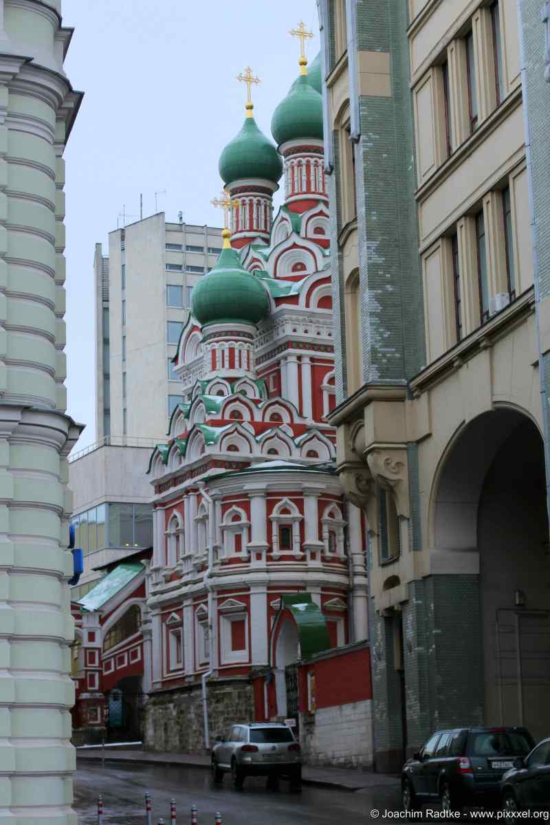 Die Kirche wurde nach dem wohl aus Jaroslawl stammenden und durch den Handel mit Salz und Fisch reich gewordenen Moskauer Kaufherrn Grigori Nikitnikow benannt. Dieser ließ die Kirche um das Jahr 1630 auf dem Gelände seines Handelshofes an Stelle eines abgebrannten Vorgängerbaues errichten. Die Kirche wurde 1917 durch die Straßenkämpfe der Revolutionszeit in Mitleidenschaft gezogen. 1920 wurde sie geschlossen, restauriert und in eine Zweigstelle des Historischen Museums umgewandelt. Nach dem Ende der Sowjetunion wurde sie wieder für den Gottesdienst geöffnet.